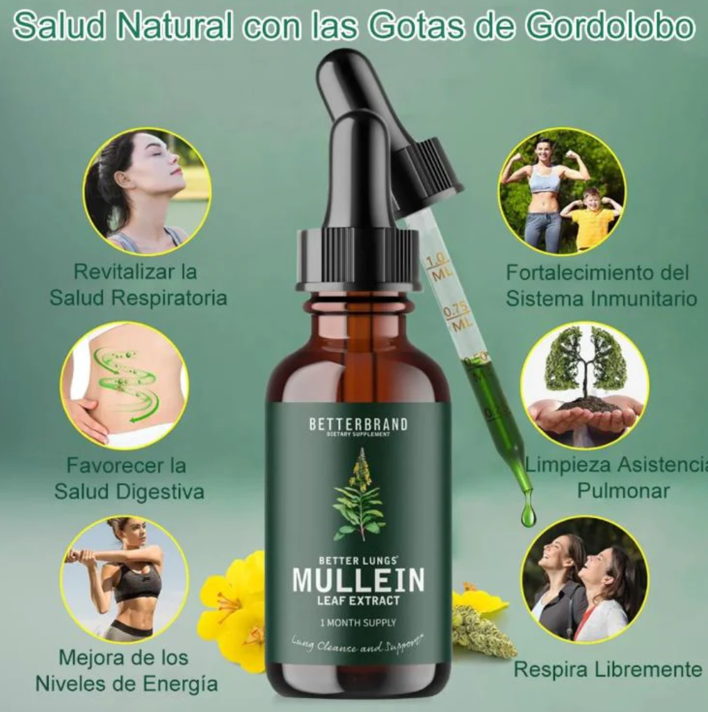 💧 Pero ahora tienes un apoyo natural: Mullein Leaf Extract con hoja de gordolobo y clorofila líquida, una fórmula herbal diseñada para purificar los pulmones y devolver la ligereza a tu respiración.