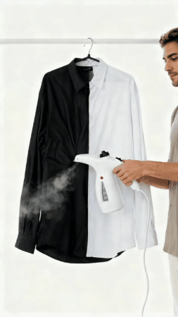 - 🧺 Sin tabla ni complicaciones, planchás directo desde la percha.