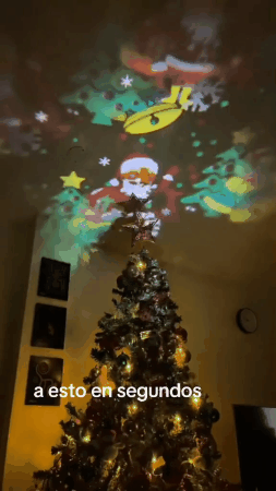 - 🎅 16 patrones dinámicos — proyecta figuras navideñas en movimiento como renos, copos, árboles y Papá Noel.